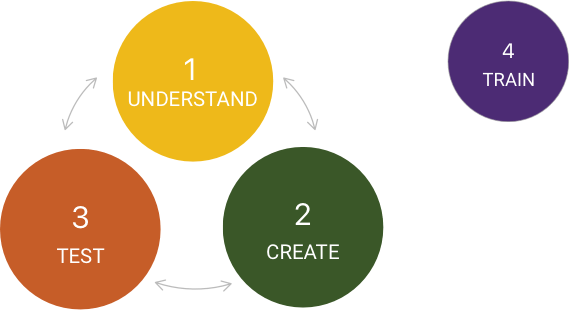 Our design process relies on what we call "The minimum-viable problem-solving process". To achieve a useful and usable products, our iterative design process consists of 3 areas: